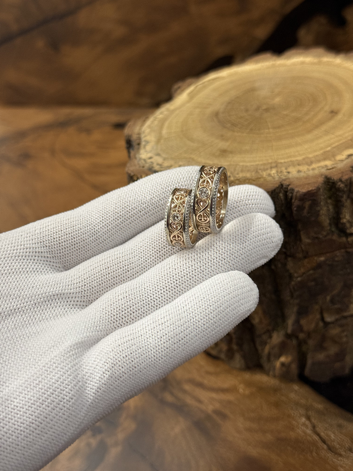 Долго выбирали где заказать обручальные кольца на свадьбу.